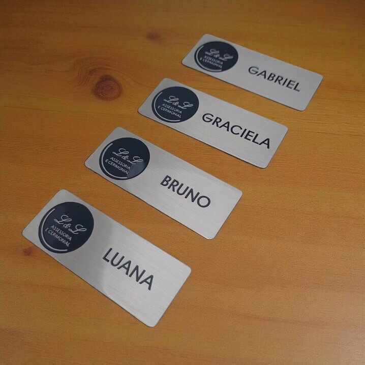 Crachás Personalizados Aço Inox – Kit com 10 unidades